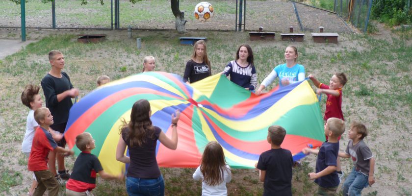 The team that was leading this playground wasn’t the same everyday, but here is the list of all of them: Sveta Kudlai, Yaroslav Mokritskii, Ania Podrucha, Nastya Plyva, Ira Plyva, Anya Shestova, Nastya Mankovskaya, Kolya Vatsyuk and Igor Zabarnyi. The aim of this playground was to share the Gospel with kids, invite them to the Sunday school and get acquainted with their parents, that’s why we did different visual evangelization: with the help of heart that is restored in an amazing way, evangelization with paints and with the help of package, water and fire we told them about trust to God. Also we sang Christian song for kids to a guitar. Some parents came closer to us to know what was happening there. A lot of them heard the Gospel and didn’t mind. We wanted to make friends with kids, that’s why we prepared different games and competitions.