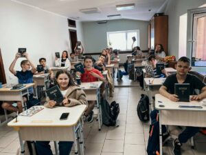 Ruslana Kovalchuk also received literature from the Ukrainian Bible Society, which she already uses in Christian ethics lessons.