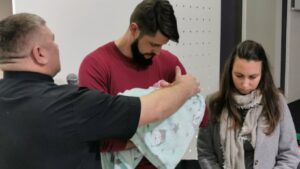 Praise be to God for the recent joyous event in the church – we had the baby dedication of newborn! This is the answer to the continuous prayers of Vladimir and Tanya’s family. The child was born prematurely in the seventh month and had to stay in intensive care for a long time. Thank God that He strengthened the family through this period and now they can serve others by being a great example and encouragement.