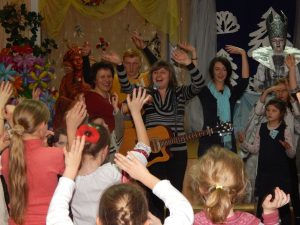 Holiday for children began with a reminder about Who gives us life, Who has created us, and why we are so different. Children happily sang about God’s love, drew names of months, in which they were born, played games and competed for prizes. An extraordinary surprise for children was a performance of stilters and “live” sculptures from theater Galatea. Teachers and educators also enjoyed the holiday and were really happy for children.