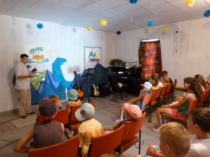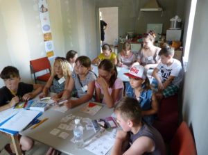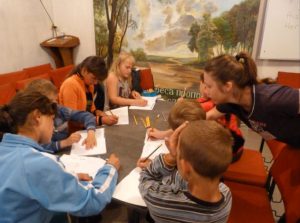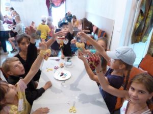 Every time I go to the camp I worry that there will be no kids and every time God amazes and cheers me up more and more. Last year we held a similar camp in this village the first time and there were 25 kids maximum. This year thanks to God’s mercy and your prayers there were about 25 kids everyday. There were days when even more kids came. A lot of kids who were in the camp last year brought their friends, brothers and sisters to the camp this year. Also during the camp some of the parent came and were watching how it all was going. It was a good possibility to talk to them, find out what they think about church at all. Also we bought cupcakes for kids everyday in the local bakery. Many of the workers asked about the price of the camp and when they found out that it was free for kids they started to give us a discount and said that when their kids would be older they would bring them to our camp for sure. There were English lessons for kids everyday and nevertheless their level was not very high God gave kids and us patience. Also we prepared a lot of sport games and different competitions, so that nobody was bored. And of course we did crafts and I noticed that kids in the village are more patient and attentive than in the city. On the last day of the camp, Sunday, kids performed a skit about Jonah on the church meeting, where we invited their parents too. It was a good possibility to tell them the Gospel.