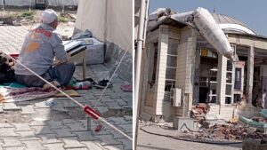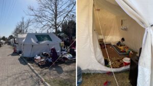 People here live on the streets in tents because it is dangerous to stay even in those buildings that are left. Our brothers also spent the night in tents, as they repeatedly experienced earthquakes – and it was really scary!