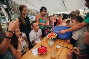 God has blessed our team from Zdolbuniv church “Source of Life”. The camp consists of 32 team members and 61 teenagers in the forest named Holy, Rivne region. Therefore, the camp was named “Holy wood”.