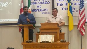 У Тбілісі наші брати познайомилися й підтримали сім’ю перських християн, які несуть служіння в міжнародній церкві, а також працюють з біженцями з різних країн, надаючи гуманітарну та соціальну допомогу та благовістячи. В неділю наш керівник і пастор проповідував там з перекладом на мову фарсі, і це богослужіння транслювали в перськомовні країни.