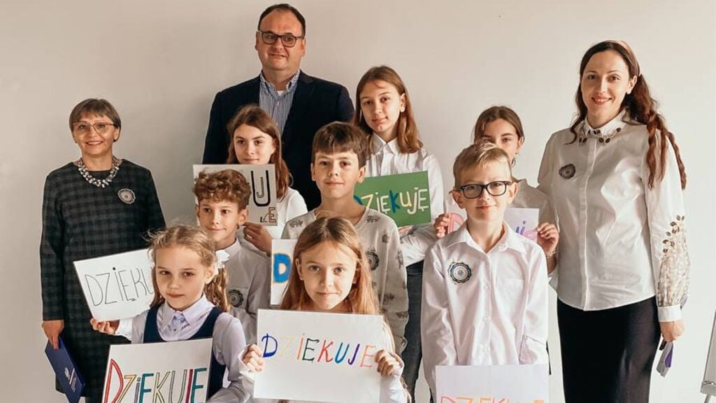 Ми щиро подякували нашому дорогому гостеві за дружній візит, за прекрасні та актуальні подарунки: художню літературу, навчальні посібники з вивчення польської мови, карти. Пан консул високо оцінив знання нашими дітьми польської мови, яку ми вивчаємо з 1-го класу, а також роботу школи. І за такий відгук ми йому дуже вдячні.