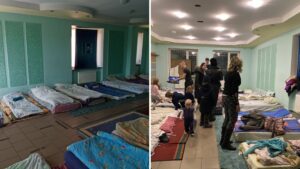 По официальным данным с начала войны, спасаясь от российской армии, в г. Ривне прибыло около шести тысяч беженцев из Киева, Ирпеня, Чернигова, Харькова, Запорожья, Луганщины. Наряду с другими христианскими церквями и организациями нашего города христианская миссия «Надежда — людям» и Библейская миссионерская церковь «Община Доброго Пастыря» активно включились в работу по оказанию помощи пострадавшим. Практически весь имеющийся транспорт и братья-водители задействованы в служении эвакуации людей из горячих точек и доставки их в Ривне. Здесь мы организовываем для них ночлег на загородной базе «Залесье» неподалеку, которая вмещает до 150 людей, а также в самом помещении миссии, где можно временно разместить 50-70 человек.