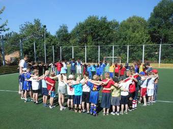 В этом году третий раз лагерь проходил на нашем искусственном поле в центре г. Ровно на территории МОО «Надежда – людям». Назвали мы его «Лига чемпионов – 2013».