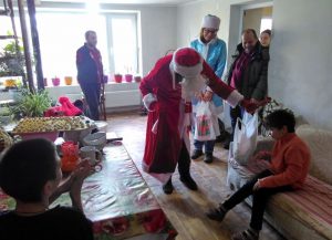 За это время мы смогли посетить 11 семей, из которых в 9ти семьях есть дети инвалиды. С некоторыми семьями мы уже были знакомы какое-то время, а с некоторыми только познакомились. Они очень радовались, когда к ним приходили Дед Мороз и Снегурочка и поздравляли их с праздниками. Приходя в какую-то семью в гости, кроме подарка и печенья мы дарили календарь со стихами из Священного писания на их родном языке и само Писание. Потом мы просили Всевышнего о благословении для каждой семьи. Это были незабываемые встречи.