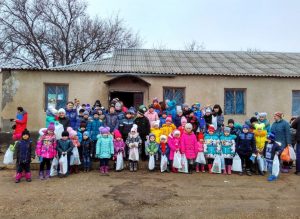Подарки состояли из конфет и канцелярии (цветной картон, карандаши, альбом и пластилин). Благодаря этим подаркам мы смогли им еще раз рассказать им о Христе и о том, для чего Он пришел в этот мир. Мы много ездили, и всегда Бог давал силы нашим водителям и хранил нас в дороге от разных происшествий. Слава Ему!