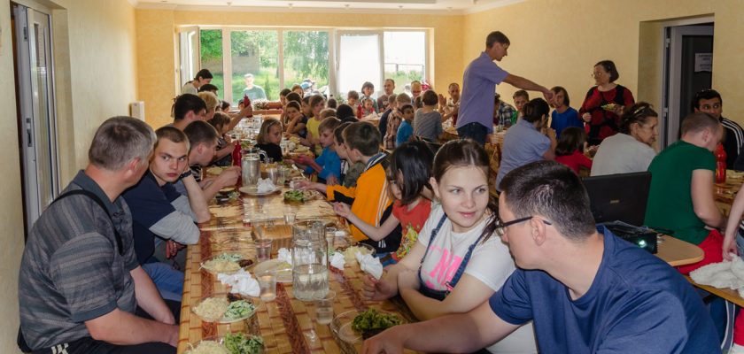 Поки ми слухали проповідь, молоді брати з «Общини Доброго Пастиря» розважали наших дітей, граючи з ними в спортивні ігри. Це дозволило нам зосередитися на тексті Писання. Після проповіді в спортивні ігри грали вже й дорослі. Микола Нікітін зі своєю командою заздалегідь підготували чудовий волейбольний майданчик та зі свистком, як справжній арбітр вів волейбольні бої. Хтось ходив, хтось спілкувався, хтось грав з дітьми. По домівках роз’їжджалися втомлені та задоволені. Ті переселенці, які не є членами протестантських церков, були дуже здивовані побаченим: всі намагалися збагнути, що ж тут відбуваєлося, і я їх частково розумію. Після зустрічей, які влаштовують переселенці, об’єднуючись в громадські організації – ця зустріч виглядала зовсім по-іншому. Неозброєним оком видно, що цих людей об’єднує не просто спільна біда, але щось більше. Один з наших невіруючих гостей, переселенець з Донецька поставив мені питання: «А щоб брати участь в тому, що тут відбувається (дитячі табори, зустрічі і т.п.) потрібно вступити в віру?» Я намагався йому пояснити, що це безкорисливо, але в цьому гріховному світі в таке віриться через силу …