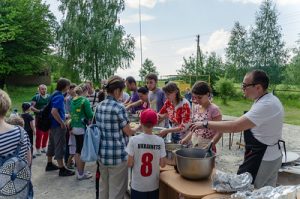 Цієї неділі, 31 травня, в Залісся пройшла друга зустріч переселенців. Цю зустріч МГО «Надія – людям» організувала, щоб проявити до сімей переселенців дружнє співчуття й підтримку в непростий період їхнього життя. Місія повністю взяла на себе витрати на харчування та транспорт, організувала спілкування та спортивні ігри і, таким чином, проявила любов до ближніх. Як один з переселенців, можу заявити, що для нас, людей, що втратили звичний спосіб життя, залишили свої будинки тарозлучилися з багатьма родичами й друзями – така участь в нашій долі дуже і дуже цінна. Важко навіть сказати, хто зробив для нас більше в цей період: ті, хто допомагав нам матеріально чи ті, хто просто дружив з нами.