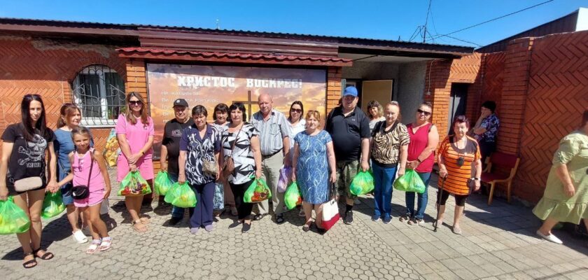 Незабаром ми дізналися, що поряд із Кам’янським є табір «Лісова казка», де мешкає 360 переселенців з Авдіївки. Наша церква двічі робила по 140 продуктових наборів і допомагала цим людям. У серпні та жовтні 2023 року з допомогою молоді з братніх церков провели два табори для дітей мешканців «Лісової казки». Разом із співробітниками місії «Надія — людям» приїжджали туди з виставкою картин «Життя Ісуса Христа у творах мистецтва». Зараз усі ці люди перебралися в Кам’янське. Слава Богу, дві жінки постійно ходять до нас на богослужіння.