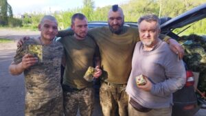 22 квітня 2025 року наші співробітники Вячеслав Артерчук і Аркадій Сльоза вирушили на Донеччину, щоб передати допомогу 16 підрозділам. Частину військових ми знаємо вже третій рік, з іншими наші працівники познайомилися вперше — благовістили, молились і дарували молитовники. Усе — з проханням до Бога про захист для тих, хто тримає фронт.